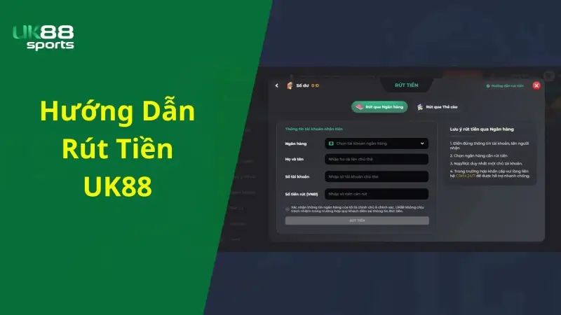 Hướng dẫn rút tiền siêu nhanh tại Uk88